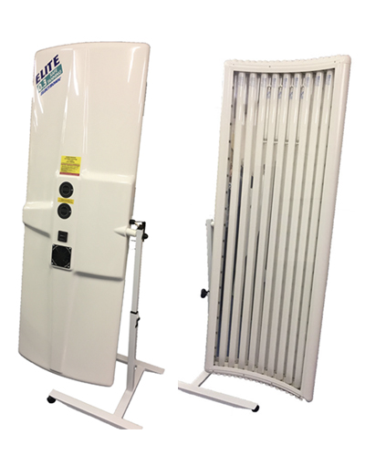 The attractive modern design of the Elite Sunbed Canopy combined with its many features makes it the ultimate home solarium for those who may have limited space and want to lie down. The Elite Canopy Sunbed is supplied on a stand and can be stored upright and moved easily when not in use. Manufactured from the latest technology composite materials (Acrylic Capped A.S.A plastic and UPVC) this sunbed is the most modern canopy you can hire - that is why it is called appropriately Elite. The ideal sunbed for use within the home and performs excellently as a hire unit. The sunbed is fitted with 0.3 compliant tubes for a safe tanning experience, as well as twin safety times again for your safety. Increase the levels of Vitamin D and simultaneously get ready for your holidays getting a perfect all over salon tan.